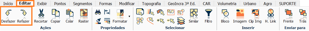 Na aba Editar, escolhe entre as opções Desfazer e Refazer.