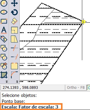 Com a ferramenta Escala, é possível aumentar ou diminuir todo o desenho de acordo com um fator específico de escala, ou de acordo com um clique no desenho.
