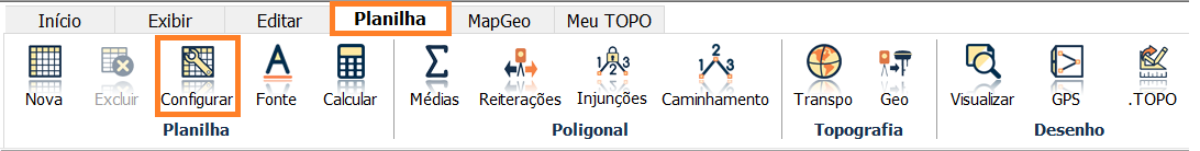 Agora, vamos carregar o levantamento de campo no Métrica TOPO PLANILHA e configurar como serão executados os cálculos (use a aba DADOS).