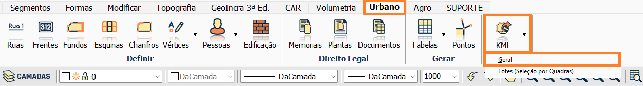 Para isto, vá em Urbano, selecione a ferramenta KML -> Geral.