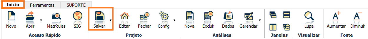 Para salvar seu projeto na extensão .DMS, basta ir na aba Início, seção Projeto e selecionar Salvar.