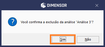 Ao clicar em Excluir irá aparecer a mensagem de confirmação se deseja excluir a análise, se estiver correto, basta clicar Sim.