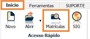 Para cadastrar matrícula no banco de dados no Métrica DIMENSOR, vá na aba Início e clique na ferramenta Matrícula na seção Acesso Rápido.