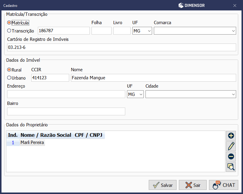 Nesta ferramenta, é possível incluir todos os dados de matrícula e de proprietários no seu projeto.