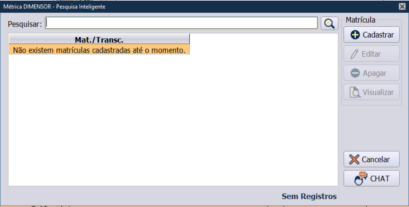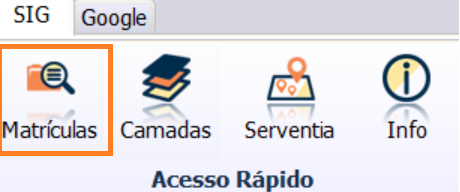 Para abrir os cadastros existentes no banco de dados no Métrica DIMENSOR, basta secionar opção SIG e ir na ferramenta Matrículas.