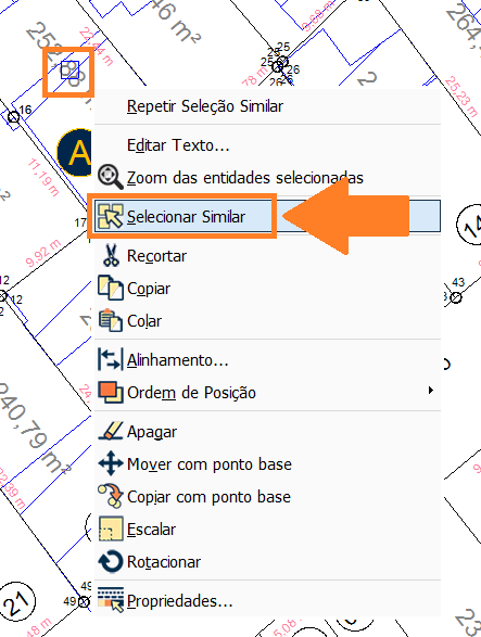 Para utilizar este comando, primeiro, selecione o objeto, em seguida clique com botão direito e vá na opção Selecionar Similares.