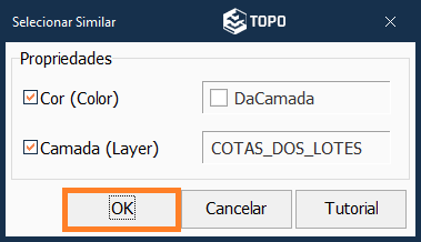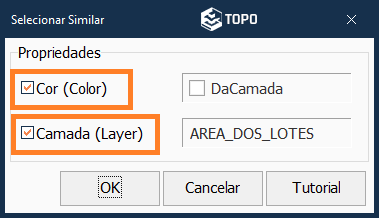 Se ativar as duas opções, o comando irá selecionar todos os objetos do tipo texto que esteja na cor e na camada do objeto de referência selecionado.