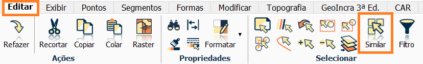 Ou acesse a aba Editar e selecione a ferramenta Similar.