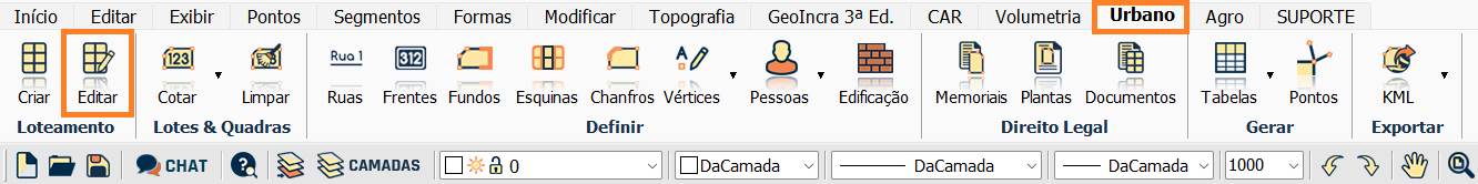 Na aba Urbano, clique na opção Loteamento Editar.