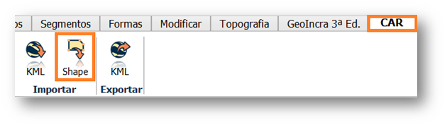 Através da aba CAR, seção Importar clique na ferramenta Shape.