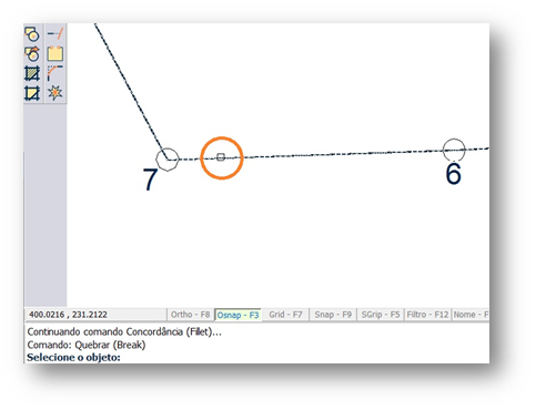 Agora, selecione dois pontos para romper a linha. Se necessário, utilize o Osnap para maior precisão.