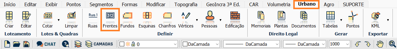 Temos duas formas de definir as frentes: definir manualmente para cada lote ou definir frentes dos lotes em linha.