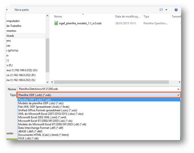 Caso for um pacote do Office mais antigo que 2010 ou então versão "Home and Student", a planilha .ODS não será aceita no SIGEF, conforme divergência da imagem abaixo.