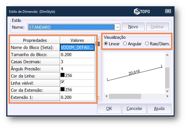Deletar: Irá deletar o estilo de dimensão selecionado na opção Estilo.