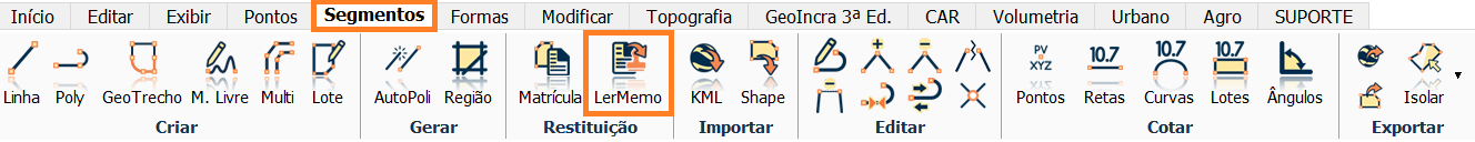 Esta ferramenta está disponível em 5 abas do Métrica TOPO, Pontos, Segmentos, Topografia, GeoINCRA, CAR.