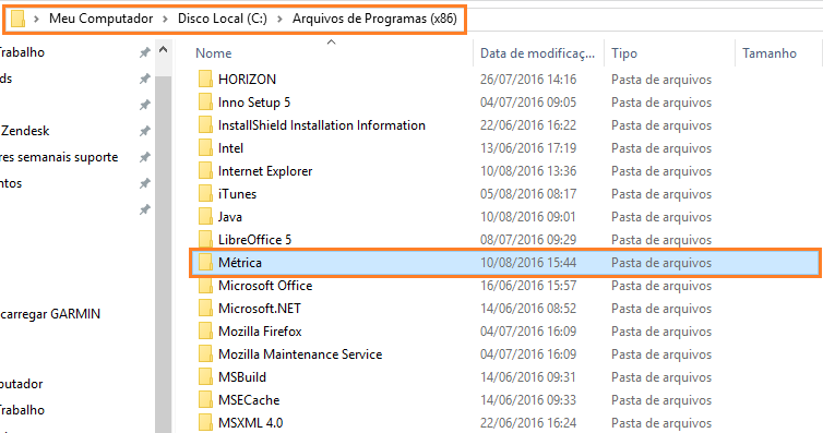 Meu Computador > Disco Local (C:) \ Arquivos de Programas (x86) \ Métrica