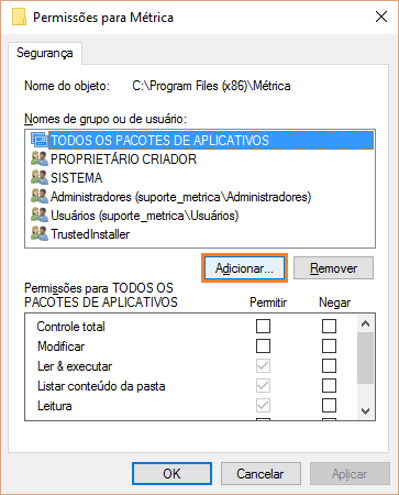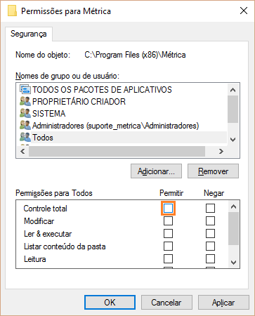 Na opção Controle total, habilite a opção Permitir. Automaticamente os campos abaixo serão preenchidos.