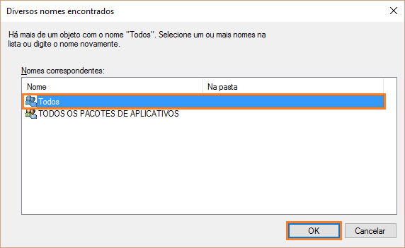 Escreva "Todos" na lacuna abaixo e clique em OK.