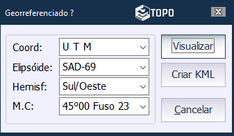 Ao clicar OK, será solicitado as georreferencias do loteamento, informe coordenada, elipsoide, hemisfério e meridiano central para exportação.