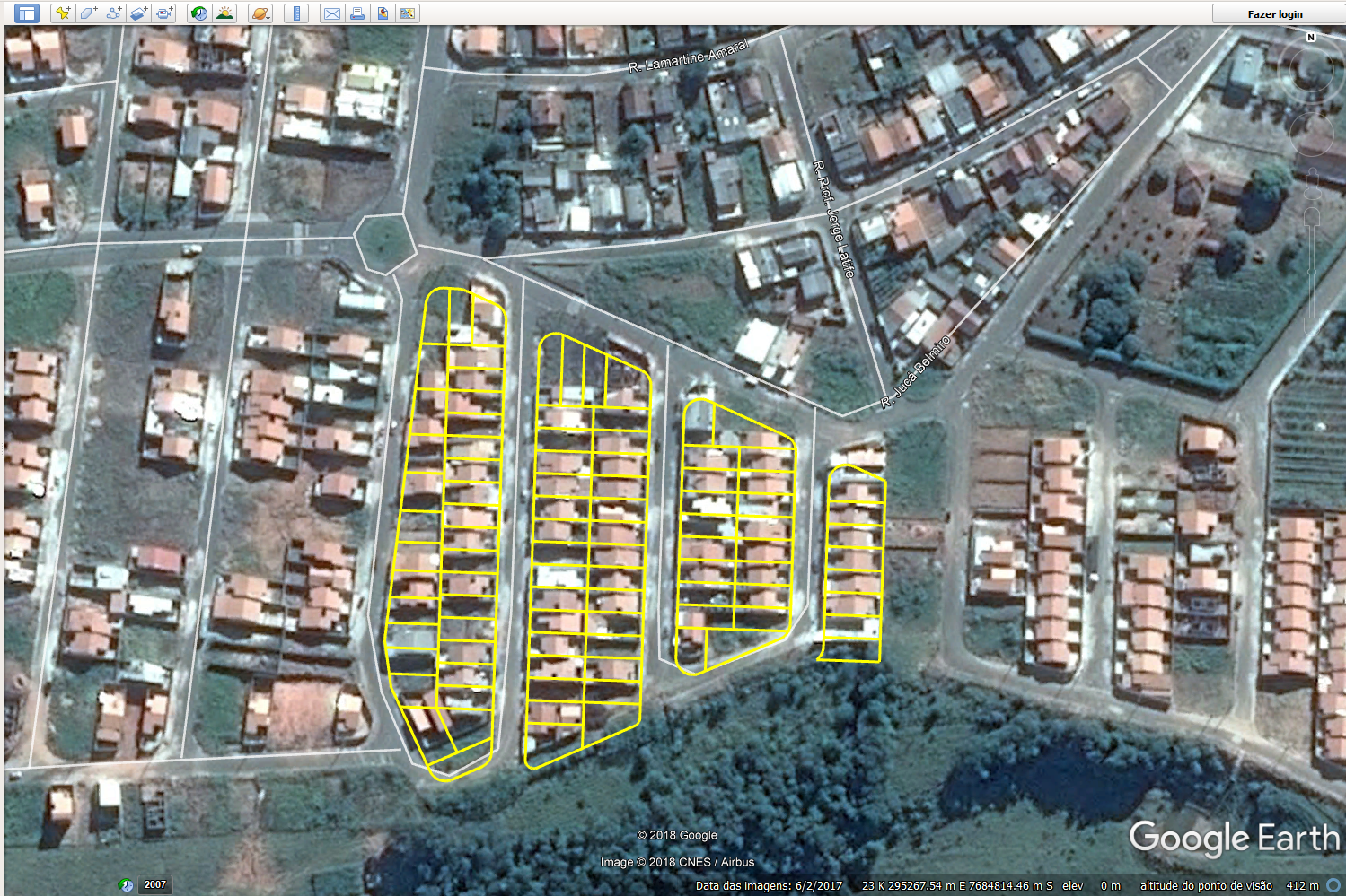 Você poderá Visualizar ou Criar KML, ao clicar na primeira opção podemos visualizar o loteamento através das imagens do Google conforme imagem abaixo.