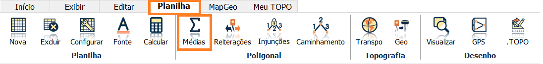 Para utilizar a ferramenta, vá na aba Planilha e selecione a ferramenta Médias.