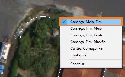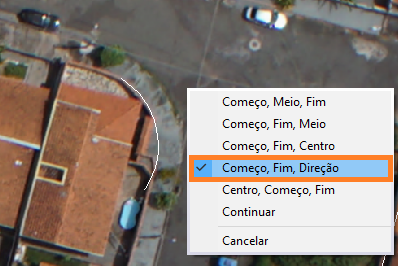 Neste opção, podemos determinar em três cliques o retângulo, informando começo, o fim e a direção que o arco irá formar.