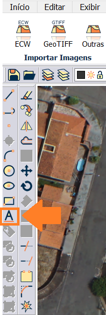 Para criar um texto no ambiente RASTER, selecione a ferramenta texto conforme imagem abaixo.