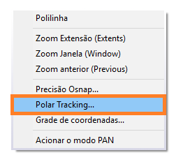 Com essa ferramenta é possível utilizar como referência um ângulo incremental e intervalo de distância poltar no momento de utilizar comando polilinha para vetorização para isso, clique com botão direito e vá na opção Polar Tracking.