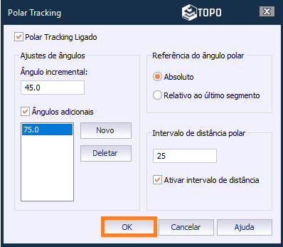 Definimos também o intervalo de distância polar, para isso, ative a opção ativar intervalo de distância.