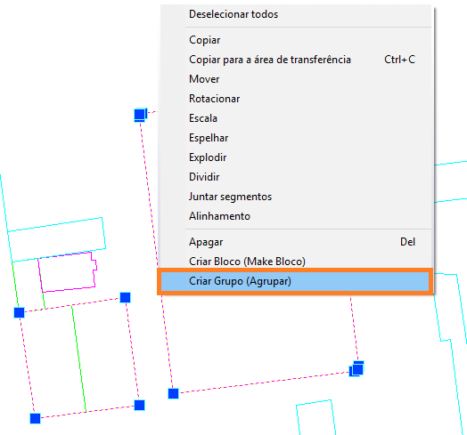 Para isso, selecione todas as entidades, clique com botão direito e vá na opção Criar grupo.