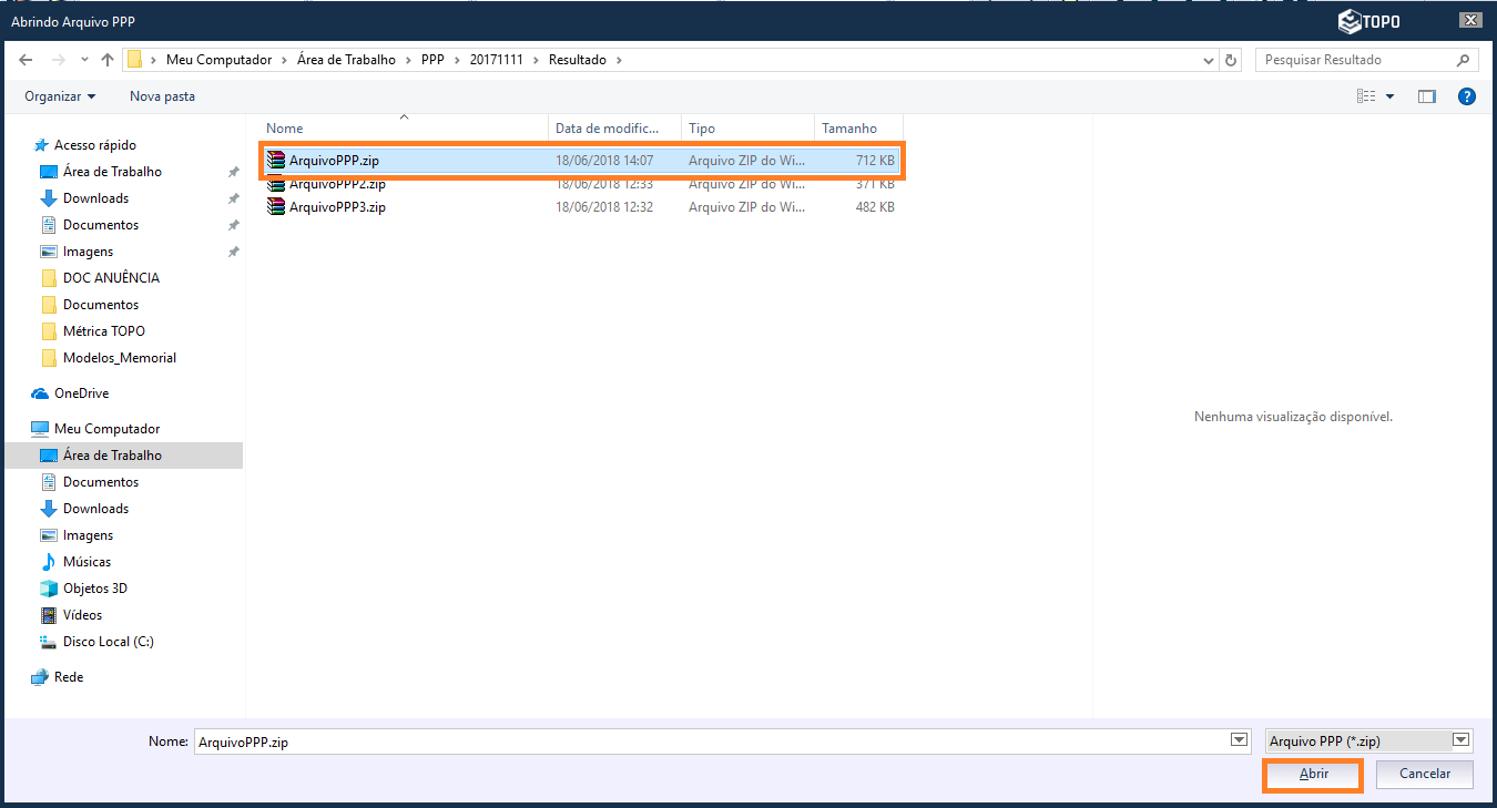 Irá abrir a janela do windows para selecionar a pasta o qual o arquivo com os resultados do processamento foi salvo, encontre o arquivo, selecione e clique em Abrir.