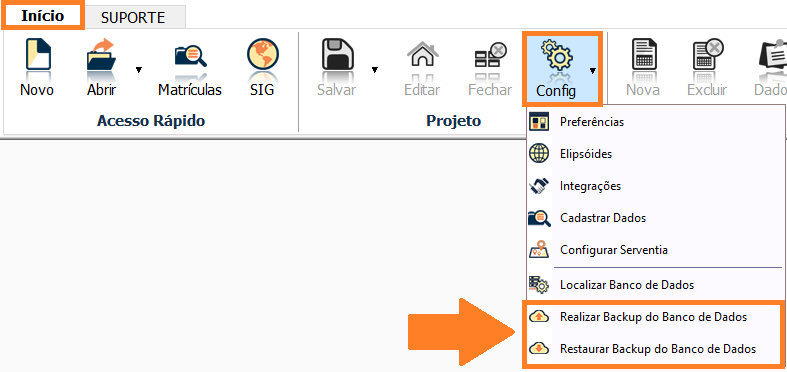 Para isso, basta ir na aba Início, na seção Projeto e selecione a ferramenta Config.