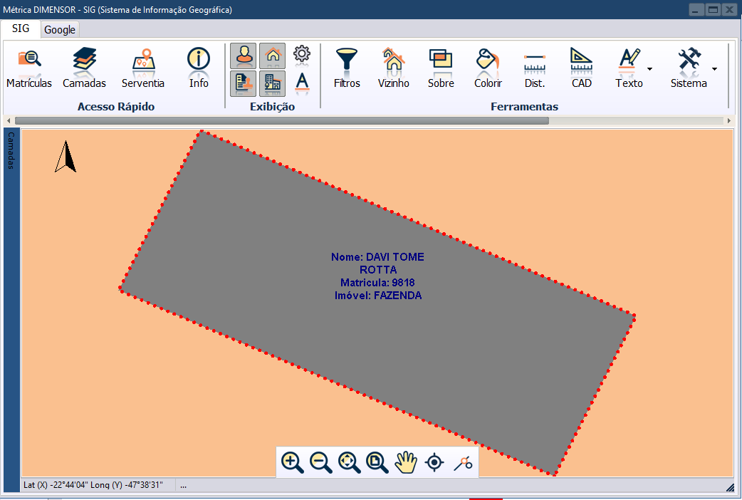 Imóvel plotado no SIG da sua comarca e vinculado ao banco de dados.