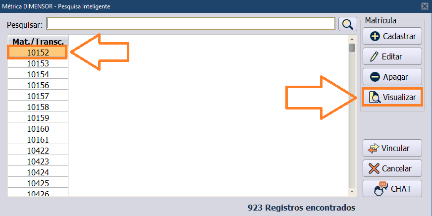Selecione a matrícula desejada e clique em Vincular.