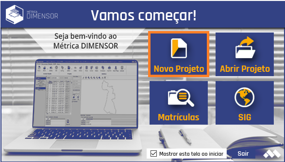 Para isso, abra o Métrica DIMENSOR e clique em Novo Projeto na tela de Boas Vindas ou na aba Início.