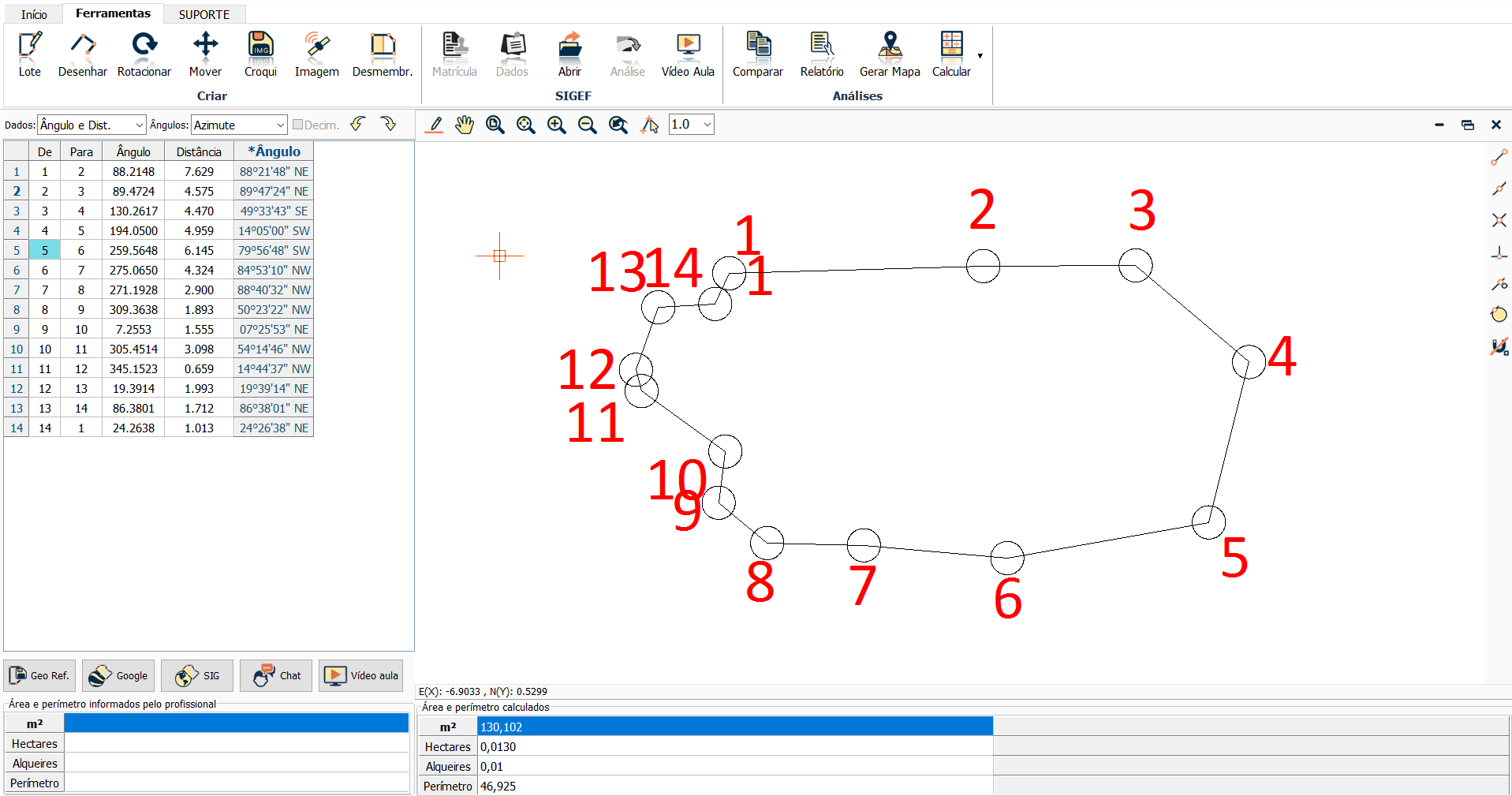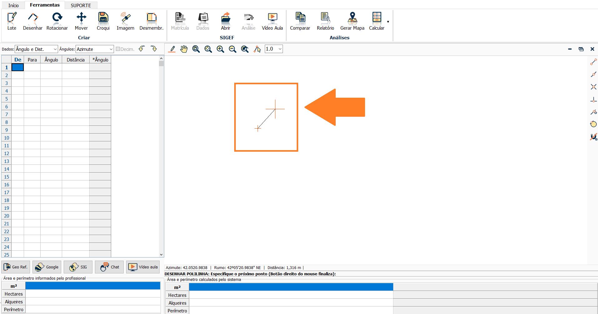 Após fechar o polígono, clique com botão direito para gerar análise do polígono desenhado, clique OK.