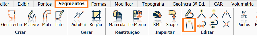 Vá na aba Segmentos e selecione a opção Remover segmento da polilinha.