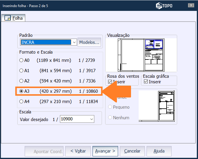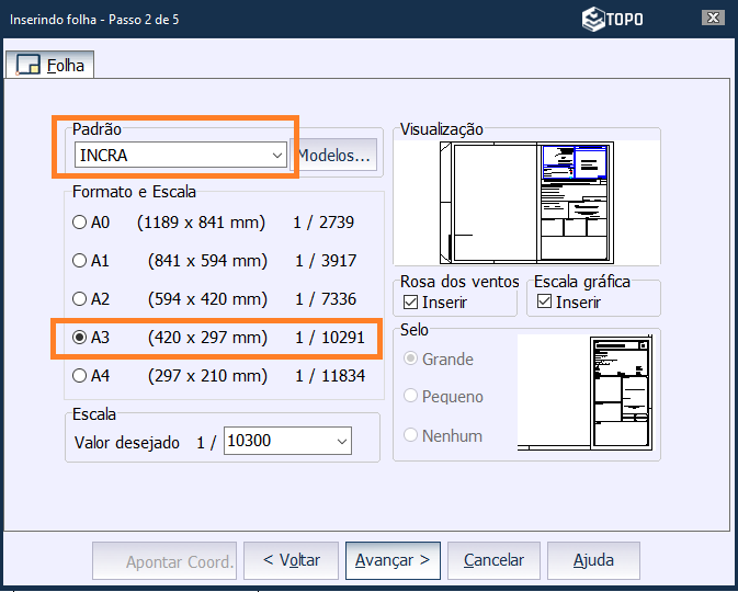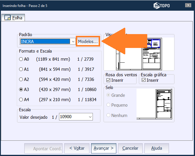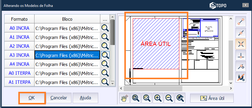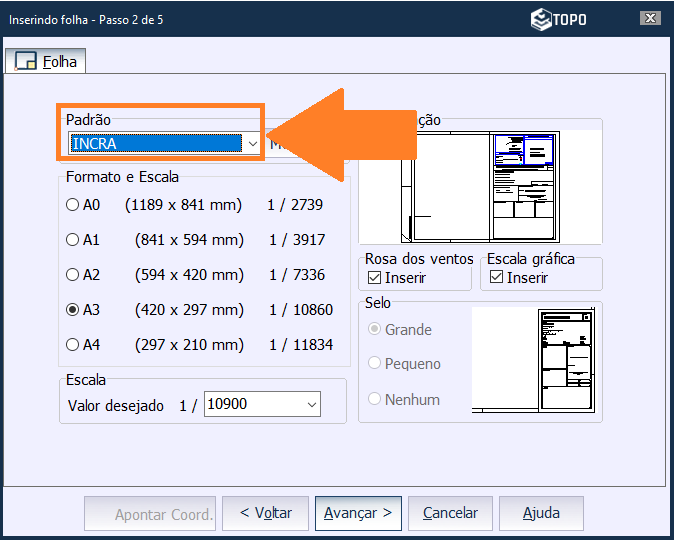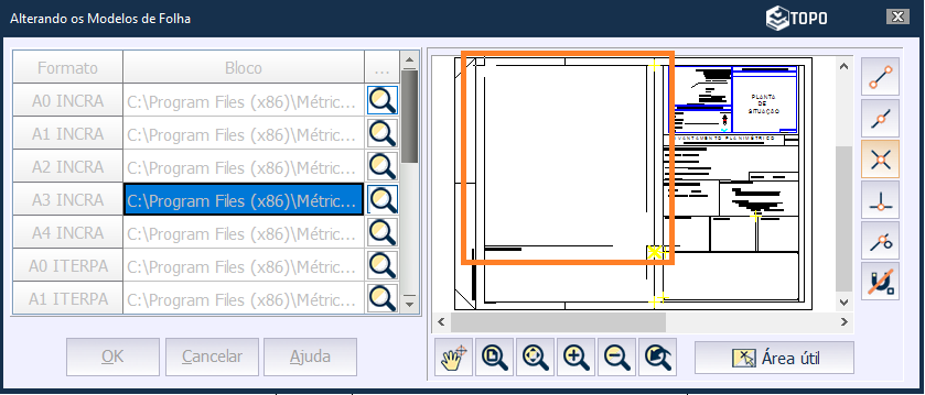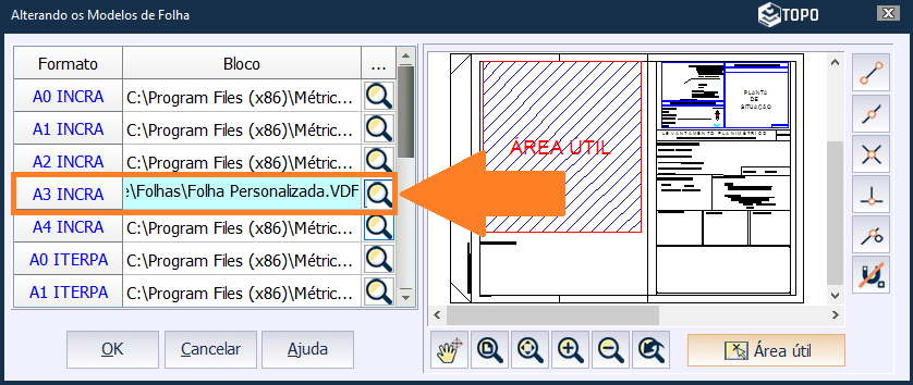 Na próxima tela, vamos selecionar nosso modelo A3 INCRA conforme selecionado anteriormente e clique na LUPA para encontrar o arquivo na pasta raiz.