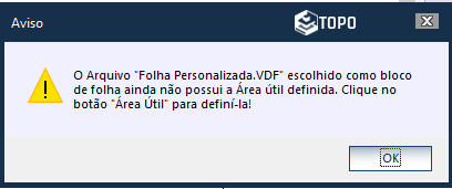 Irá aparecer um aviso sobre a folha personalizada não possuir área útil definida, clique OK e defina a área útil.