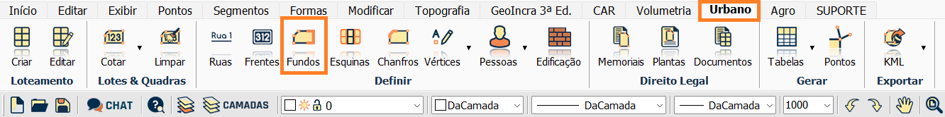 Com essa ferramenta é possível definir fundos dos lotes em casos onde seja necessário por se tratar de lotes irregulares e/ou com curvas.
