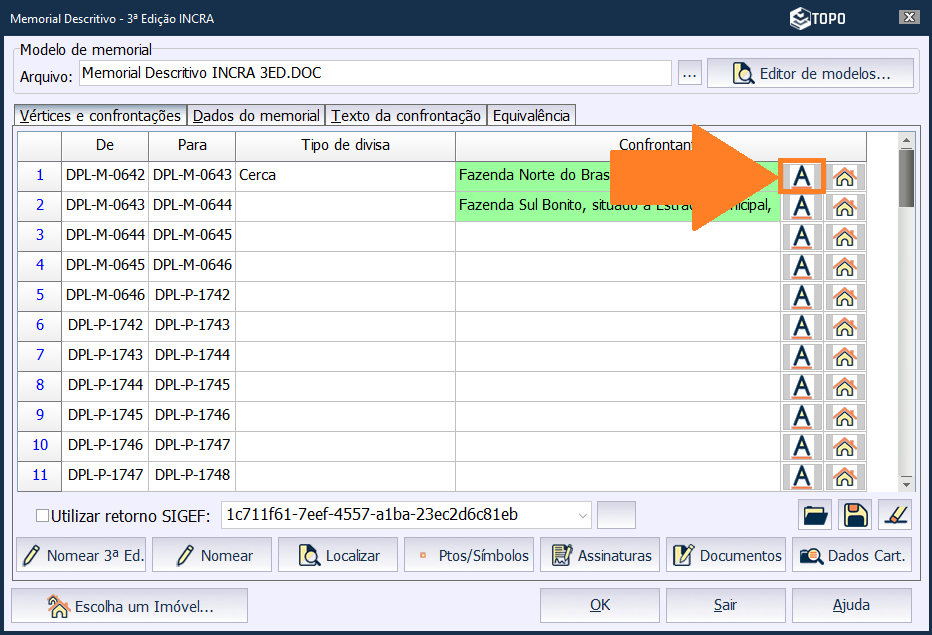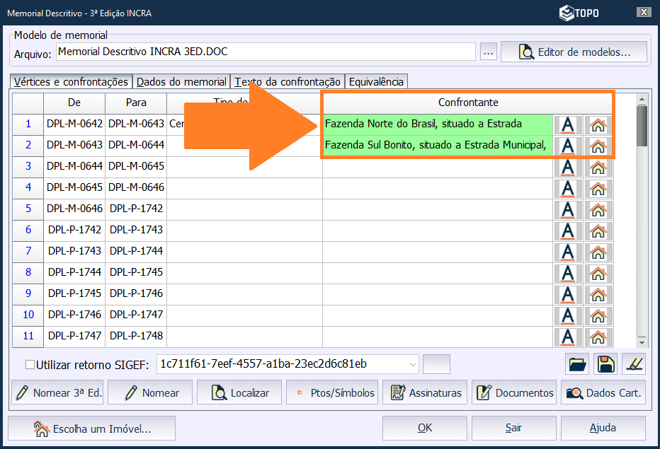 Primeiro, vamos cadastrar todos os confrontantes na ferramenta Memorial conforme abaixo.