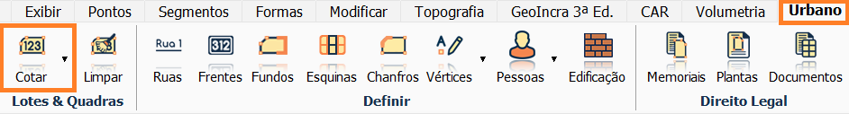 Para cotar, acesse a aba Urbano, e clique na ferramenta Cotar.